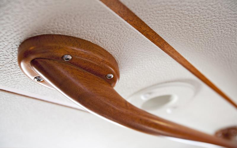 Dek en romp wordt aan elkaar gelamineerd voordat het interieur wordt ingebouwd en dit geeft een onovertroffen torsiesterkte in de romp. De voetlijst is voorzien van een teakhouten afwerking en regenwater wordt onder de waterlijn afgevoerd om strepen aan de romp te voorkomen. De degelijke klampen bevinden zich bovenop de voetlijst.