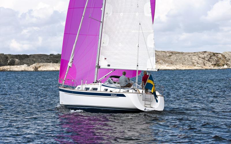 De Hallberg-Rassy 310 is gemakkelijk te varen met haar eigentijdse romplijnen en modern zeilplan met slechts licht overlappende genua of optionele keerfok. Een Code Zero of gennaker kan worden gehesen tussen de masttop en een verwijderbare boegspriet. Een onderdeks gemonteerde genua furler Furlex TD is standaard uitrusting.