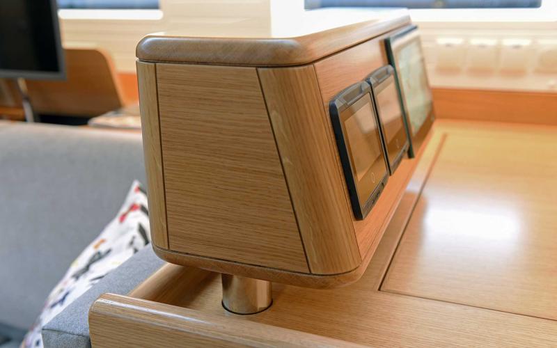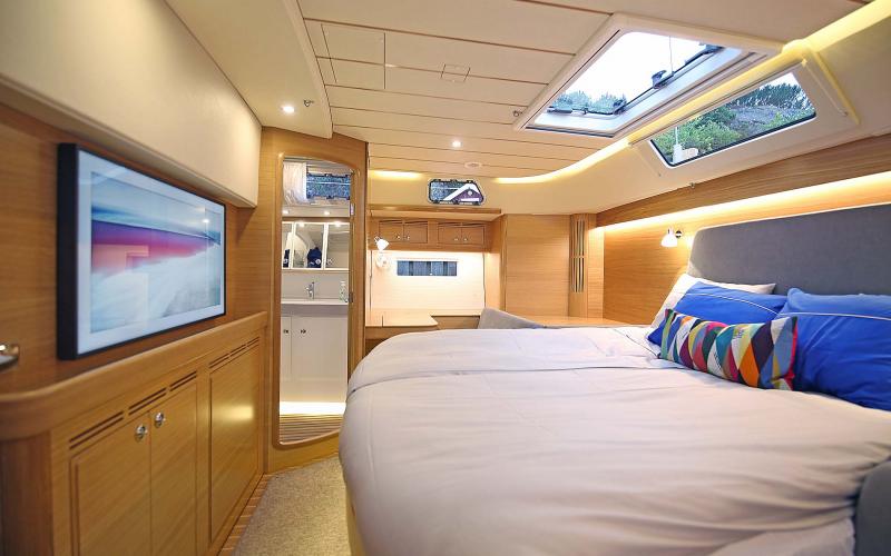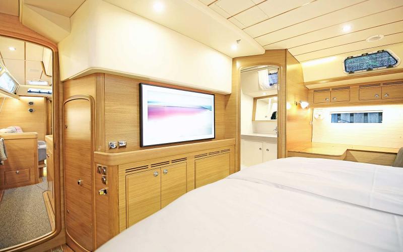"De iconische Zweedse werf heeft de afgelopen jaren een behoorlijke voetafdruk in de markt boven de 50 voet ontwikkeld. De geheel nieuwe 57 is hun tweede grootste model achter het vlaggenschip 64, en het is ook de modernste Rassy vanaf nu. Haar opvallende kenmerken zijn onder andere een centrale cockpit met twee stuurconsoles voor het bedienen van dubbele roeren - een primeur voor het merk. Strakke romplijnen en een vlak dek zijn het bewijs van het gedurfde Duitse Frers design. De Hallberg-Rassy 57 is duidelijk een boot voor de eigenaar en biedt verschillende lay-outs, inclusief de optie van een zeer comfortabele kapiteinshut in de boeg".